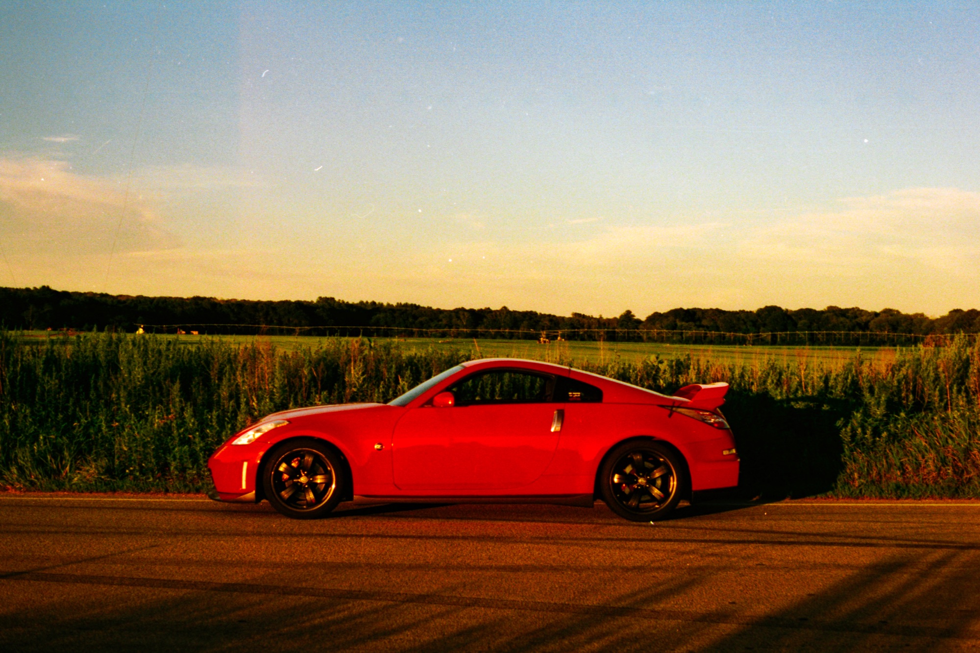 in those years, the first ‘new’ thing to see creation that fell in line with everything i was falling in love with, was the Z33 Nissan Fairlady Z. the very ‘big bang’ that began this for me wore the same Nissan crest and an HKS livery that made me feel like i was piloting a dragon in flight when I drove the HKS R32 GR. A machine in gran turismo. my love for the feeling that gave me lead me into Nissan’s Z car lineage, and a dream transpired seeing this beautiful finality in the S30 Z – I knew from then what I still know now, but that’s a story for the future. the Z33 was unveiled, and for the first time there was something on the horizon that was tangible. I vividly remember my first sight of one in person – still a kid, but now several years into this obsession but hardly ever getting to experience it in person – soon after release on a truck headed from a port to a dealership, and losing my mind. not too long after that, my father’s interest was piqued in the same machine, and he purchased an early model Z33. many years, experiences and a lot my childhood spend in that car after that, with some education provided to him by myself, he had the very fateful opportunity to purchase the vehicle above – a one of ~1600 350Z Version NISMO in bleeding Nogaro Red. graciously he offered to me to take it out of his hands once his time with it was done … and that time arose, and i forced the stars to align in my world to bring it home to me.